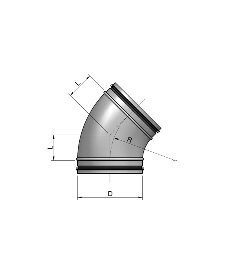 Koleno 45° s těsněním SPIRO ø160 Zvětšený