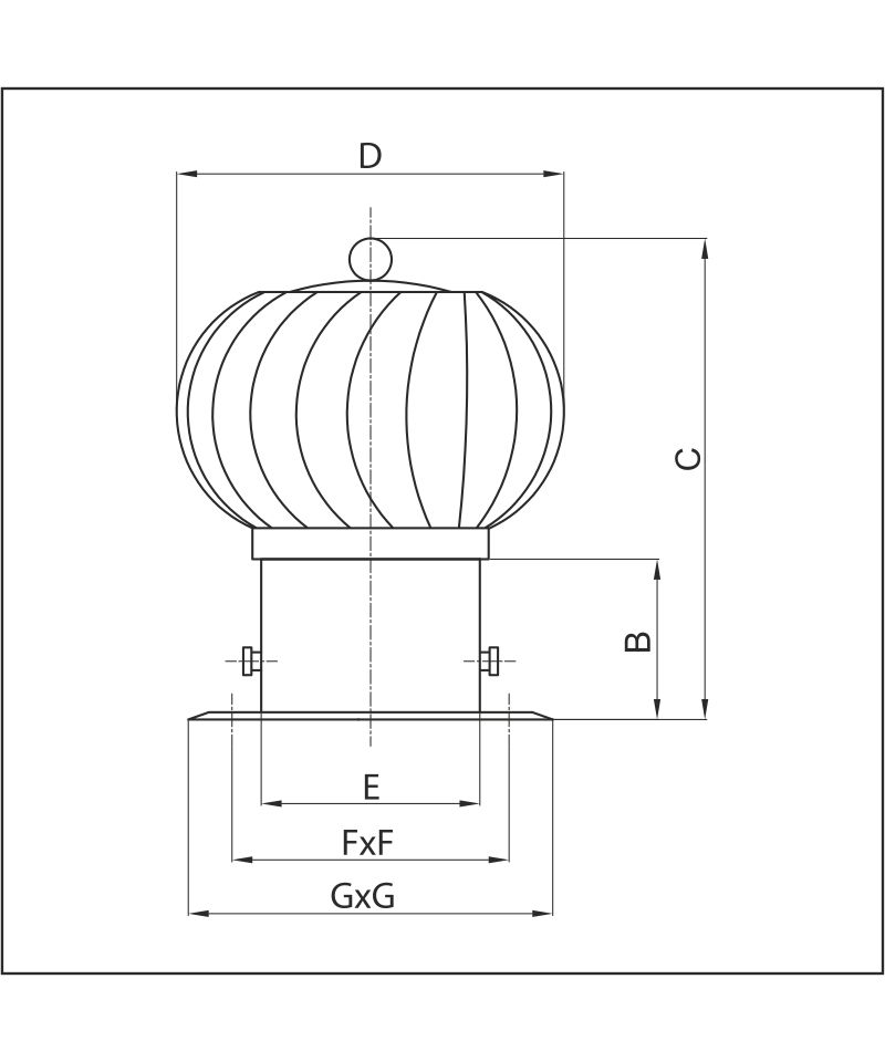 Rotační ventilační odtahová turbína je určena ke zvýšení statického tlaku ve ventilačním potrubí na základě rozdílného proudění vzduchu. Rotační hlavice je zároveň estetické zakončení ventilačního systému. Rotační ventilační odtahová turbína je vyrobena z galvanizovaného plechu a je odolná vůči teplotě 150°C a vnějším podmínkám.